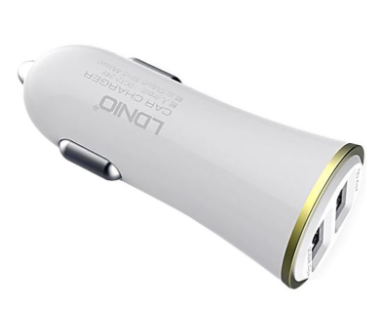 إل دينو شاحن سيارة بمنفذين مع كابل ميكرو يو اس بي أبيض