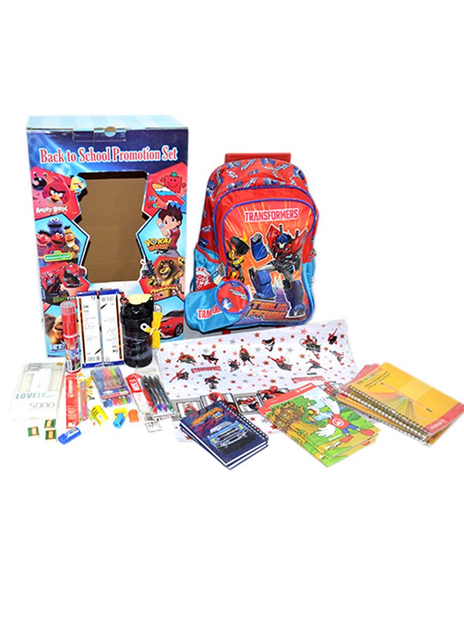 مجموعة مدرسية من 79 قطعه مكونة من شنطة ترولي من transformer ومعها كل مستلزمات الدراسة المختلفة للأولاد